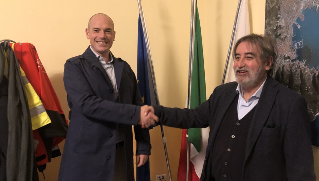 Nella foto stretta di mano subito dopo la firma del contratto tra il Presidente dell’Autorità di Sistema Portuale del Mar Ligure Orientale, Mario Sommariva e l’Ingegner Davide Adreani, in rappresentanza dell’ATI aggiudicataria del contratto di appalto.
