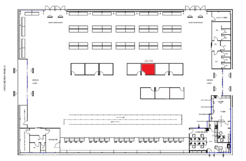 Si comunica, ai sensi della procedura aziendale in materia, che per l’annualità 2025 si rende disponibile n. 1 desk promozionale localizzato come da planimetria sotto riportata.