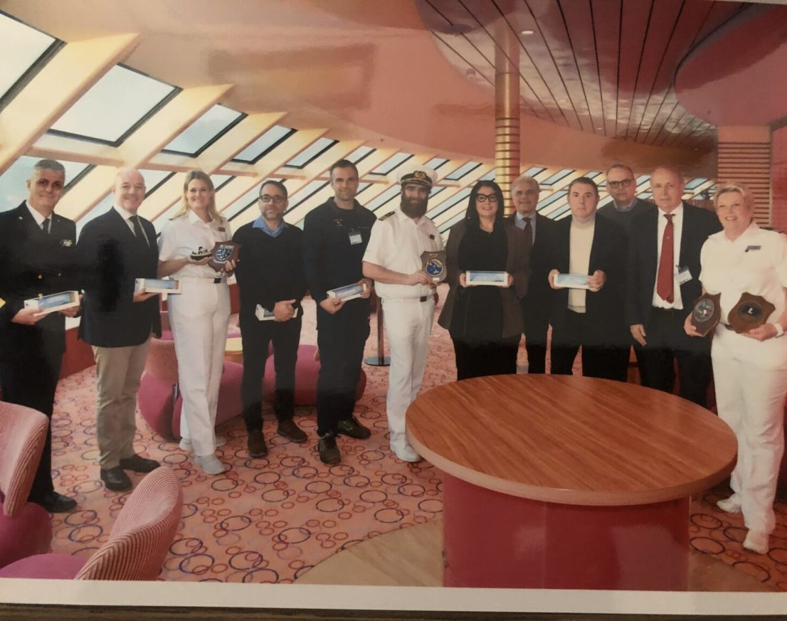 La dimostrazione, condotta dalla Sps di Olbia, si è svolta a bordo della Aida Diva ormeggiata al Molo Garibaldi del Porto della Spezia a bordo della quale sono stati ricevuti dal comandante della nave della Compagnia di navigazione tedesca accompagnati a bordo dal generale manager della società cruise terminal della Spezia e Carrara Daniele Ciulli (nella foto sotto con il comandante della Aida Diva che ha inaugurato la stagione crocieristica 2025 alla Spezia). Il benvenuto nel Porto della Spezia è stato portato dal Commissario straordinario Federica Montaresi.