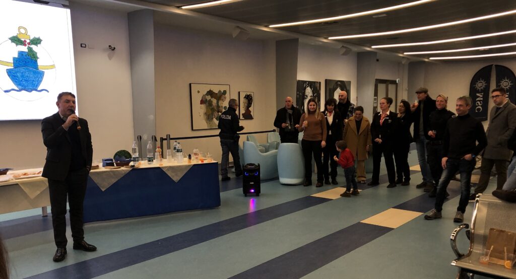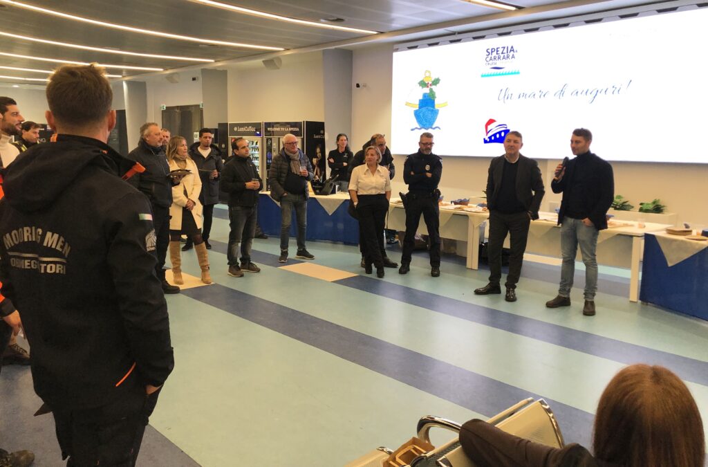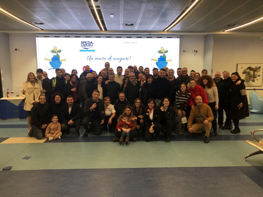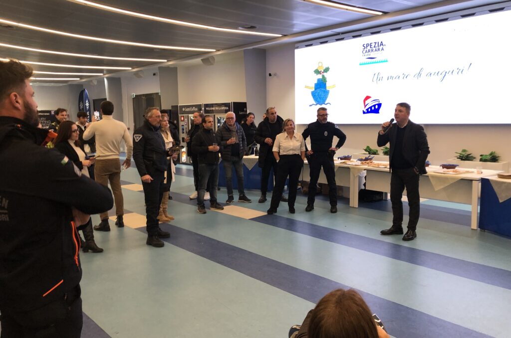 Nella foto incontro dei dirigenti con tutti i collaboratori del Terminal Cruise della Spezia.